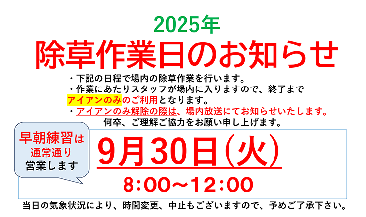 いつも、当練習場をご利用いただき誠にありがとうございます。